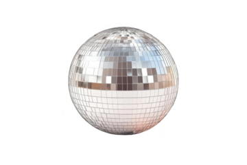 Disco ball reflecting light, symbolizing celebration, fun, party, music, and retro nightlife. Transparent background