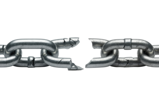 Transparent broken metallic chain illustrating weakness