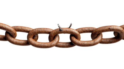 Broken Chain Symbol: A close-up shot of a broken chain, symbolizing weakness, vulnerability, and disconnection in a state of rustiness.