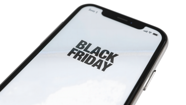 Black friday shopping alert displayed on smartphone screen for modern consumers