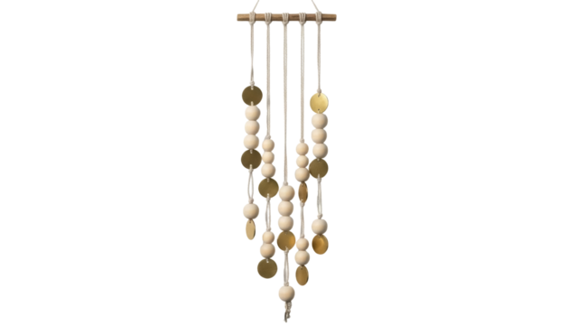 Vibrant hanging ornaments with beads and pleated discs on transparent