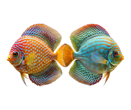 Vibrant male and female discus fish symmetrical display underwater aquatic life tropical aquarium