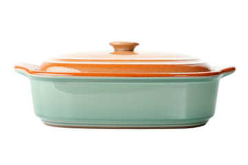 Beige ceramic casserole dish with lid isolated on transparent background for cooking