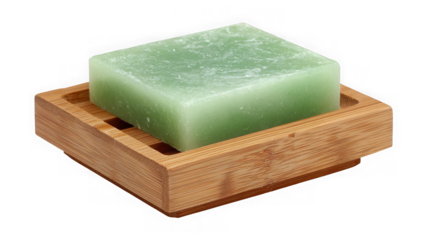 Square bamboo soap dish with slatted design for water drainage isolated on transparent background