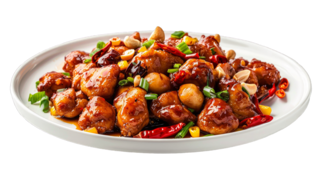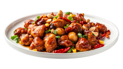 Appetizing rice plate with sautéed meat on transparent background
