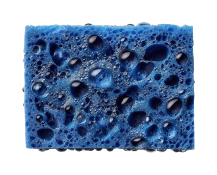 Cleaning Brush and Sponge with Bubbles on Transparent Background