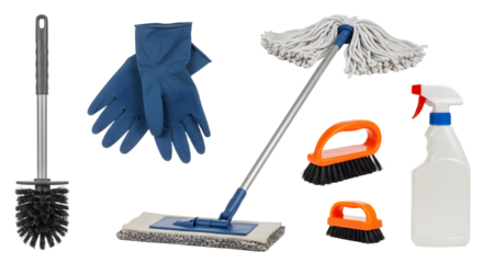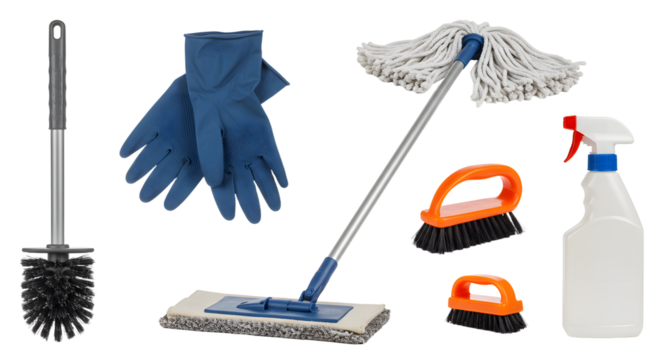 Essential Cleaning Supplies Set: Mop, Gloves, Brushes, and Spray Bottle for Effective Home Care