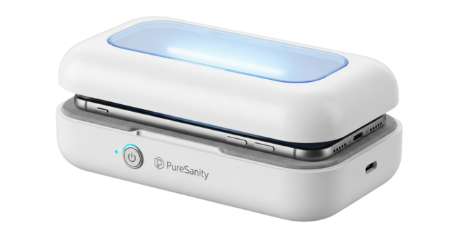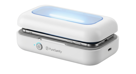 Portable handheld UV light sterilizer isolated on transparent background, symbolizing hygiene and modern disinfection technology.