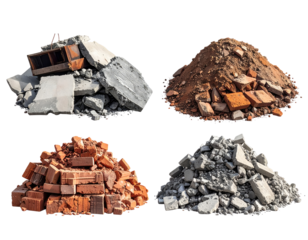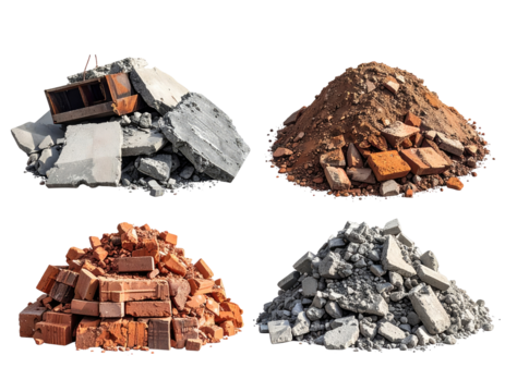 Four piles of construction debris