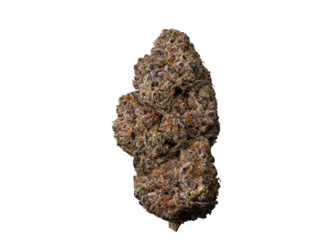 Cannabis bud with sticky trichomes on transparent background, representing medicinal and recreational uses