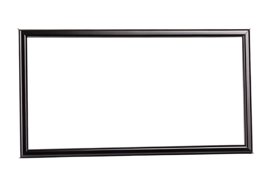 A close up shot of a rectangular black picture frame against a dark black color background space area
