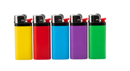Colorful Lighters in a Row on Transparent Background