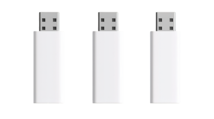 Three identical white USB flash drives arranged vertically, showing the USB connector end.