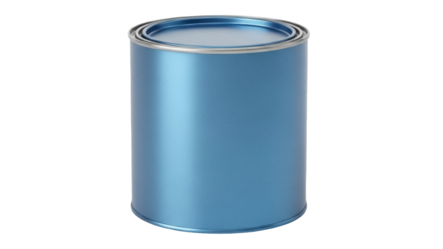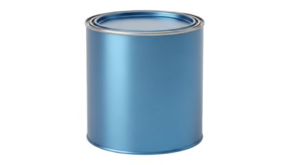 Blue paint can isolated PNG on transparent background, metal container for house renovation and artistic projects, DIY