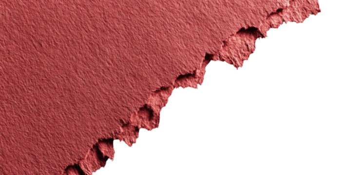 Close-up of a textured, deep rose-red cosmetic product, with a jagged, uneven edge, against a black background
