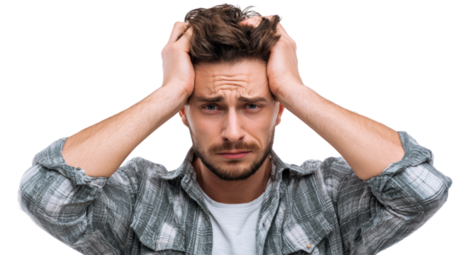 Unhappy redhead businesswoman looking downtrodden with transparent background