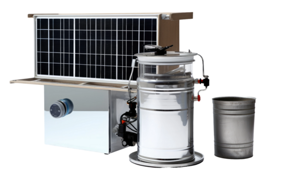 A Glimpse into the Artistic Brilliance of a Residential Solar Water Distiller with Heater on White or PNG Transparent Background.
