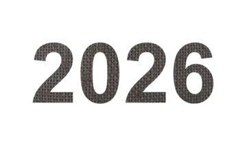 Year 2026 text rendered with a subtle digital glitch effect isolated on transparent background