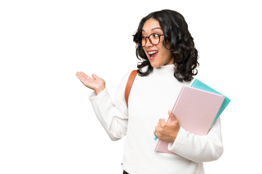 Young Argentinian student woman over isolated background with surprise expression while looking side