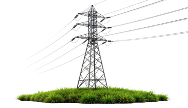 Electric transmission tower high voltage power grid infrastructure steel lattice energy utility structure realistic illustration isolated on white background