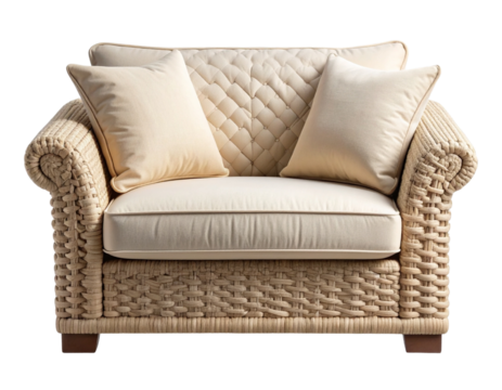 Sofa, outdoor sofa chair design renderings with rattan weaving process, transparent background