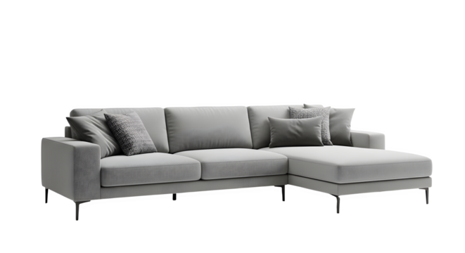 Elegant sofa with pillows isolated on a transparent background