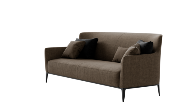 Modern Comfortable Fabric Sofa with Soft Cushions, Realistic Furniture Cutout, Transparent Background PNG