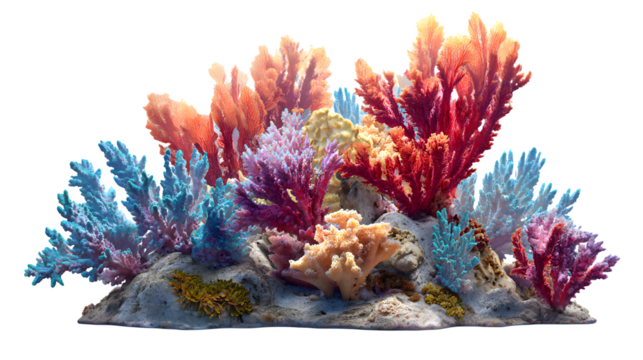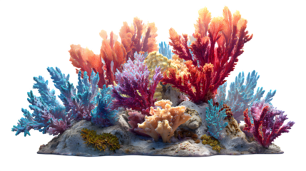 Colorful coral reef formation, isolated on transparent background