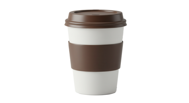White reusable coffee cup with brown sleeve for sustainable drinking concept of Transparent background png