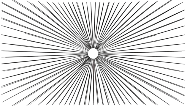 An abstract image features a dark center point from which emanating bright lines and dispersed specks create a radial effect