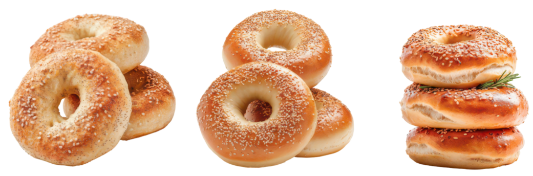 Artisan Bagel Collection: A diverse assortment of freshly baked bagels, showcasing their golden crusts, airy interiors, and inviting textures, ready to elevate your breakfast.