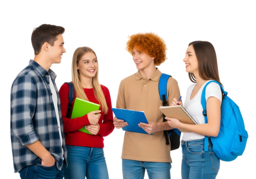 Diverse group of happy young students smiling brightly, ready for their education journey, emphasizing learning and youthful energy as a cohesive unit.