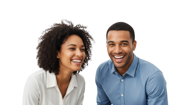 Detailed representation of diverse couple laughing together portrait highlighting couple, diverse, african in realistic and elegant