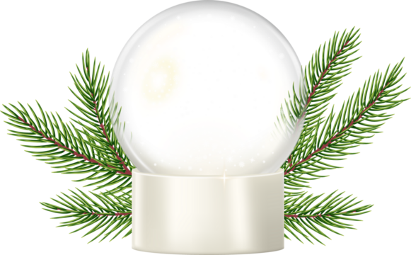 Empty Snow Globes isolated. Transparent crystal balls Winter elements for New Year decoration snow globe with flying snow festive background. Elegant holiday greeting card, promotions, seasonal