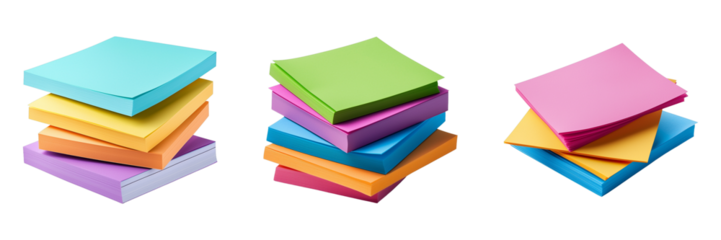 Colorful stacks of sticky notes in various shades