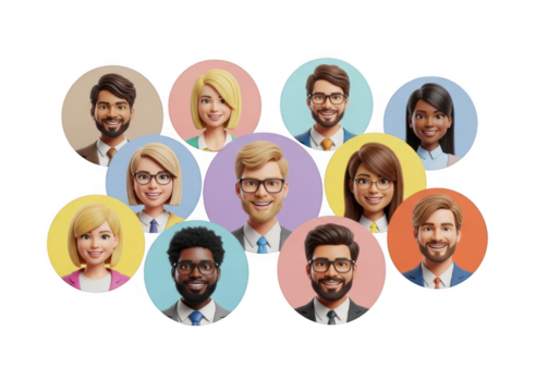 Diverse business team with colleague in wheelchair looking confident, transparent background