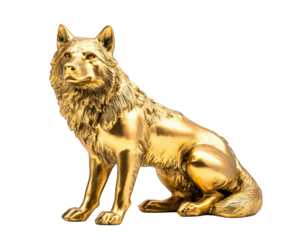 golden wolf statue with intricate details, showcasing majestic pose and lifelike features. Perfect for decor or as collectible piece