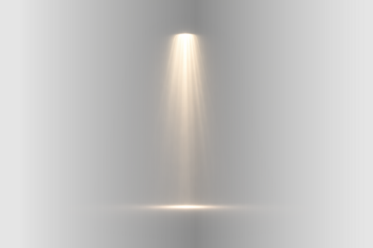 Vertical glowing spotlight beam with soft rays, dramatic abstract light illumination illustration on transparent background