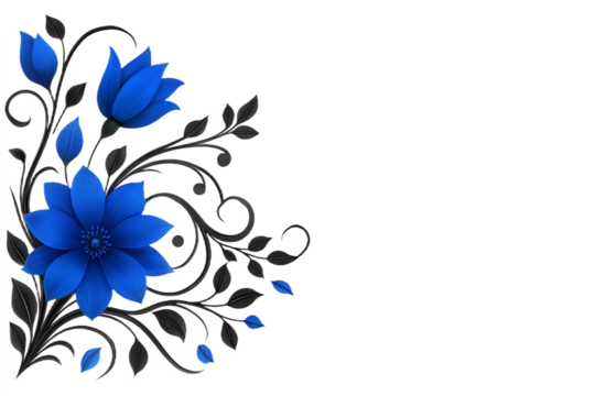 Vibrant blue flowers with delicate gray foliage adorning a dark canvas subtle elegance and natural beauty unveiled white background