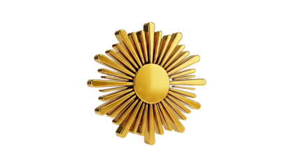 3D Golden Sun Icon with Rays on transparent background