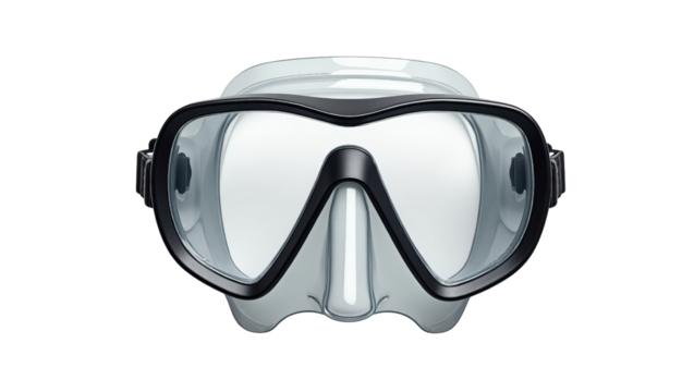 Close up view of a professional black and clear diving mask on a stark ready for underwater exploration and adventure