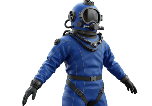 Isolated retro style diving suit with helmet, deep sea professional equipment, underwater wear