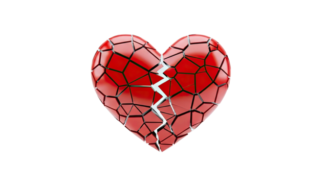 3D Broken Heart Symbol on transparent background