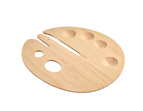 Wooden palette with divots and hole for thumb on black background