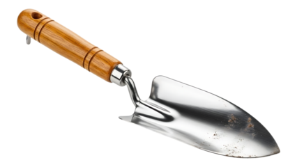Premium Garden Trowel with Wooden Handle Isolated on Black Background - Essential Gardening Tool & Product Shot