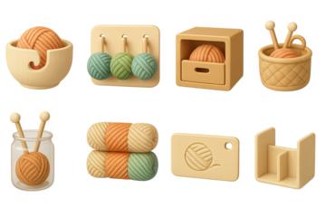 Knitting yarn 3d icons set – crafting, fiber art, textile crafting visuals