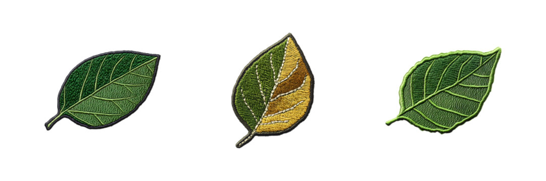 Set of Leaf embroidery patch isolated on transparent background, in PNG format, cut out