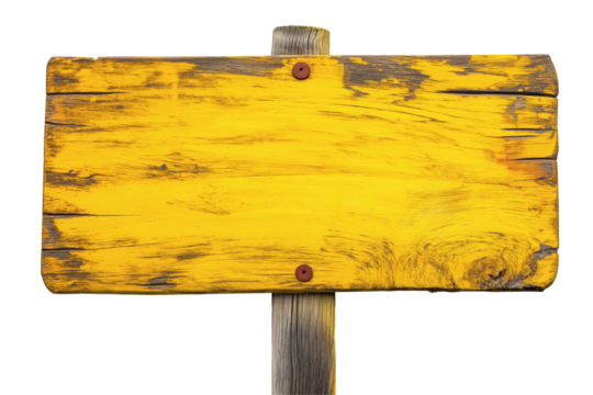 Weathered Wooden Signboard with Yellow Paint on Transparent Background