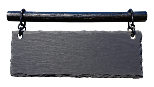 Rustic Slate Sign Hanging from a Wooden Rod with Black Hooks for Customizable Messages or Labels