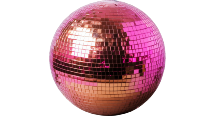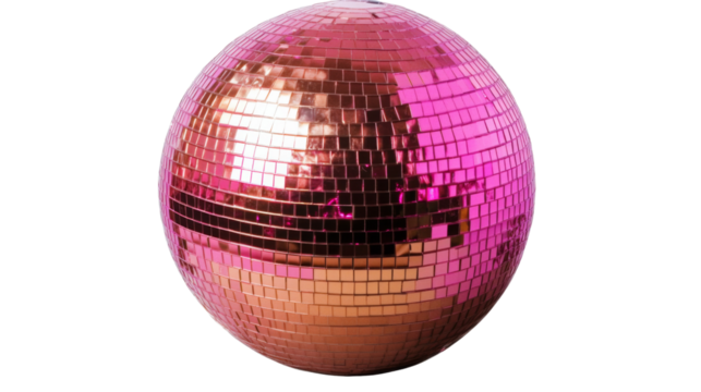 Classic silver disco ball hanging, reflecting light, isolated on transparent background, perfect for party and celebration visuals